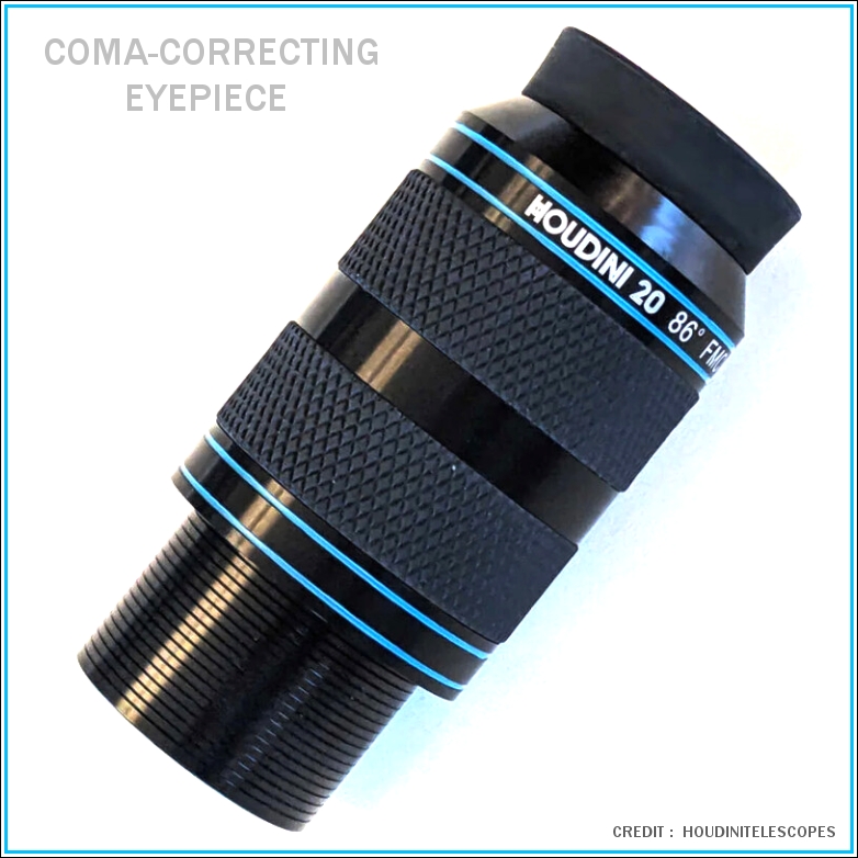 Jeden šikovný Belgičan - vývojář, programátor a amatérský astronom jménem Robert Houdart - uskutečnil celkem logickou myšlenku a do zdárného konce dotáhl vývoj řady okulárů s integrovaným korektorem komy. Okuláry se již vyrábějí v čínském Kunmig United Optics a jsou běžně k dostání už nějakou dobu, takže jsou již k dispozici mnohé recenze, které jsou hodně povzbudivé. Dost možná si po jejich přečtení na ten zadek nakonec přeci jen sednete...