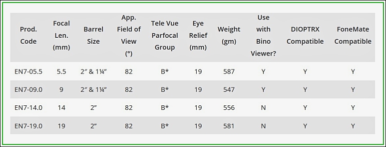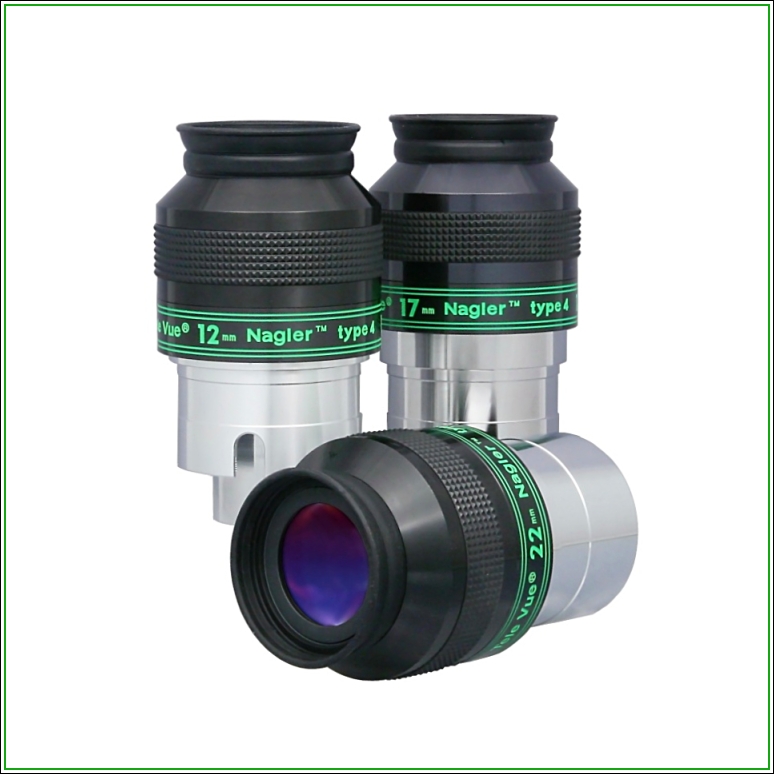 Dostáváme se tímto ke slíbeným úvahám, proč firma TeleVue dala na trh řadu T7. Základní pohnutkou bylo nabídnout více okulárů Nagler, které se vyznačují komfortnějším pohledem, tedy disponují větší vzdáleností výstupní pupily ( dále jen VVP ), a jsou tak velmi vhodné pro pomalu, ale jistě, se rozrůstající množinu obrýlené populace. K tomuto byla v minulosti vyvinuta řada T4, která byla velmi populární a doplňovala okuláry Panoptic s delšími ohniskovými vzdálenostmi, které mají větší VVP z podstaty věci. Podobně se zrodila řada T5, která především v delších ohniscích nabídla k Panoptikům "naglerovské", tedy 82° pole. Nová řada T7 přichází na trh i s tím, aby kromě již nevyráběných středních ohnisek, nabídla velmi širokoúhlé okuláry s komfortní VVP i mezi kratšími ohnisky.