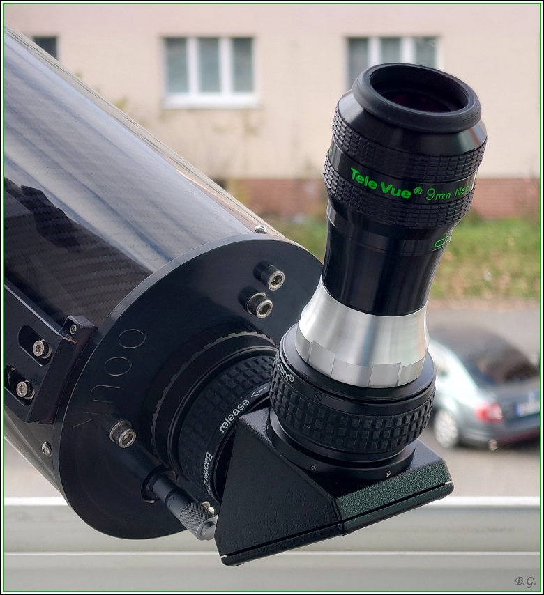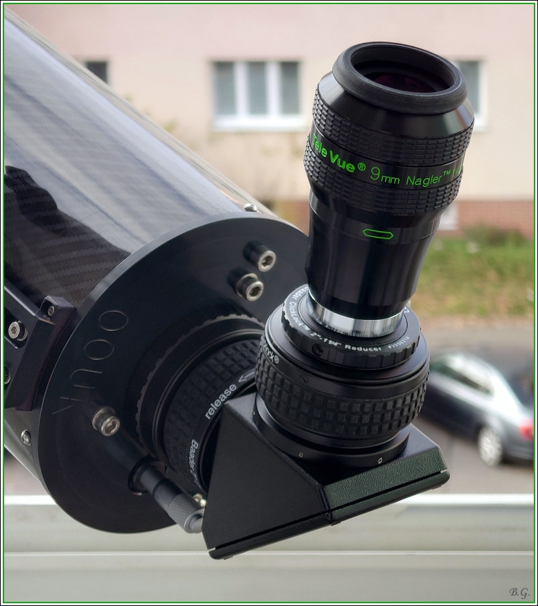 Detailnější rozbor vlastnostní všech zástupců zmiňovaných řad, který by astroamatérovi aspoň v něčem usnadnil výběr, by vydal na samostatný dlouhý článek, a ten v budoucnu zřejmě napíši. Dnes bych poukázal na dvě skutečnosti. Jednou je fakt, že novější produkce okulárů od firmy TeleVue nám postupně nabývá na rozměrech, přičemž starší a kompaktní okuláry jsou upozaďovány - mám tím samozřejmě na mysli Naglery T6. Druhým faktem je to, že využít velmi dobře vykreslené pole velmi širokoúhlých okulárů vyžaduje zabývat se ve světelných dalekohledech komou... Ano, k tomu vyrábí TV osvědčený Paracorr. Ale ani ten není v kombinaci s těmi velmi širokoúhlými okuláry dokonalý ( především zmenšuje zorné pole vinětací ) a výsledná kombinace Paracorru a vetšího 2" okuláru je dost objemná... Kam touto úvahou mířím..?
