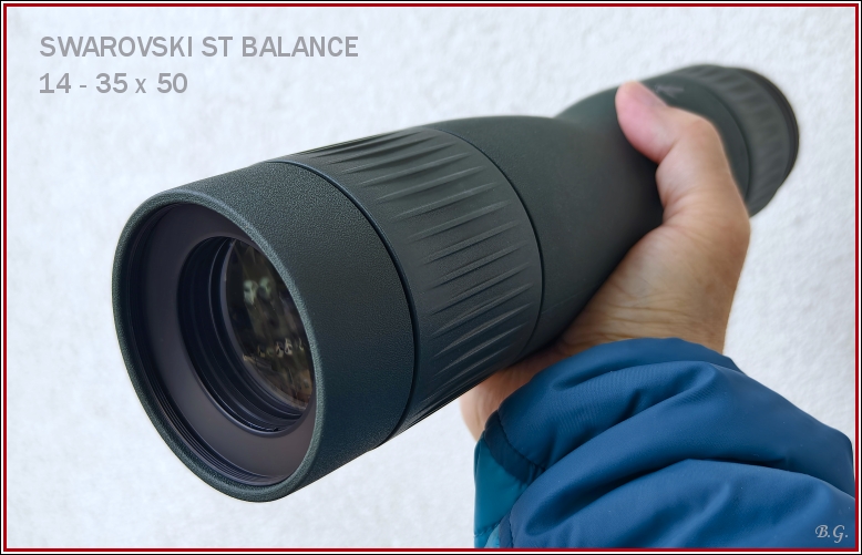 Přejděme k optice, u které se setkáme i s paradoxem, a to díky tomu, že na dobře stabilizovaném obraze jsou nedokorigované vady víc vidět... Zde v rámci recenzované dvojice jednoznačně vítězí v optice zkušenější rakouský výrobce. ST Balance má celkově menší zbytkovou barevnou vadu, výbornou ostrost i bezprostředně u okraje zorného pole a je víc odolný vůči parazitnímu světlu. Jeho obraz je ve většině pole opravdu APO, jen poblíž clony zůstává trocha barevných lemů. Pohled do jeho zoom-okuláru je komfortnější, než u belgického rivala, nicméně k dokonalosti ještě velký kus zbývá. Konstruktéři u Swarovského totiž opomněli fakt, že na rozdíl od klasického spektivu na stativu, kde se při pozorování okuláru zpravidla nemáte potřebu dotýkat, tak u stabilizovaného spektivu drženého v rukách je to přesně obráceně - opíráte ho o čelo-nadočnicové oblouky. Očnice je příliš tvrdá, nevhodného tvaru a navíc by se hodila ještě jedna poloha k jejímu vyšroubování navíc...