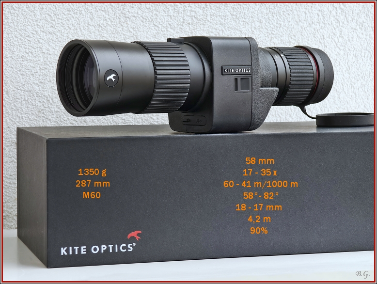 Spektiv má odnímatelný okulár, který je v těle upevněn bajonetem. Tento počin má kapku jiný zámysl, než jsme většinově zvyklí - firma nenabízí výměnné okuláry, ale jiné tělo - je jím nejlepší pozorovací dalekohled od Kite Optics - KSP 80 HD, o čemž se rovněž dočtete v uvedeném odkazu výše.