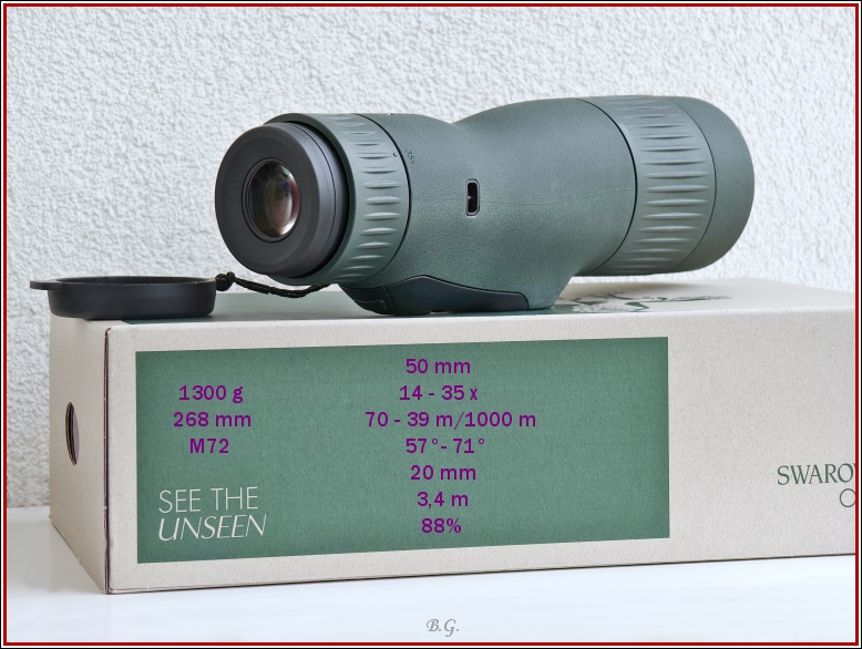 Dostáváme se tímto ke konkurenčnímu refraktorku od Swarovského. Na rozdíl od trochu hranatého belgičana je tento typickým zaobleným představitelem Swarovski pozorovacích dalekohledů. Zkrátka novinku z rakouských Tyrol byste k této proslulé firmě zařadili okamžitě...
